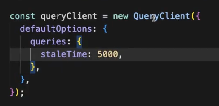 queryClient 초기화, useQuery 사용시 staleTime 같은 옵션을 설정할 수 있다
