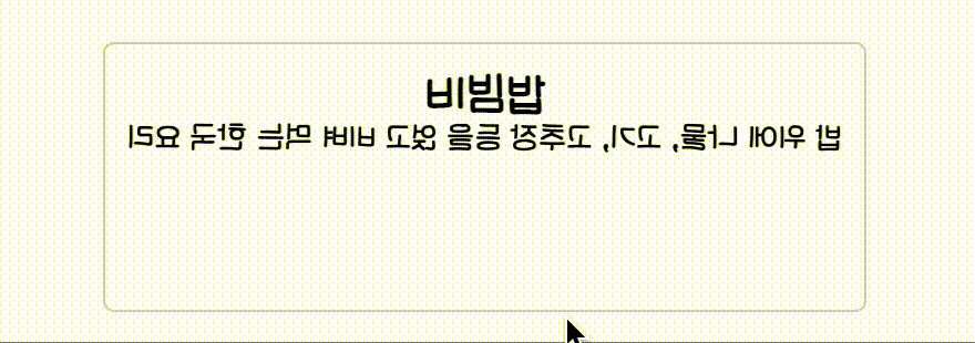 메뉴 카드의 기본 Y축 회전값을 0도로 두고, hover 상태가 되었을 때 180도로 바꿔준다.