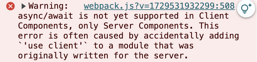 async/await is not yet supported in Client Components, only Server Components. This error is often caused by accidentally adding `'use client'` to a module that was originally written for the server.