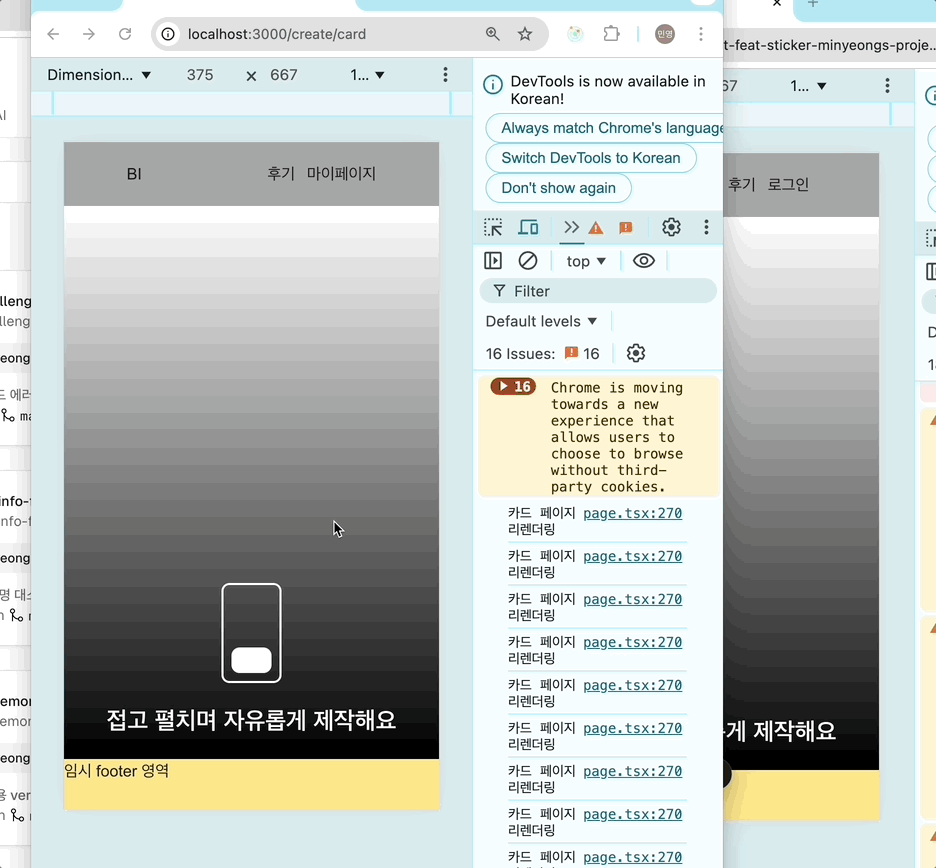 5) 그러다 리렌더링이 발생하는 근간을 찾아보고자했고, 페이지 컴포넌트 - 스티커가 보여지는 프리뷰 컴포넌트 - 스티커 자체 컴포넌트에서 모두 리렌더링이 발생하고 있음을 확인했다