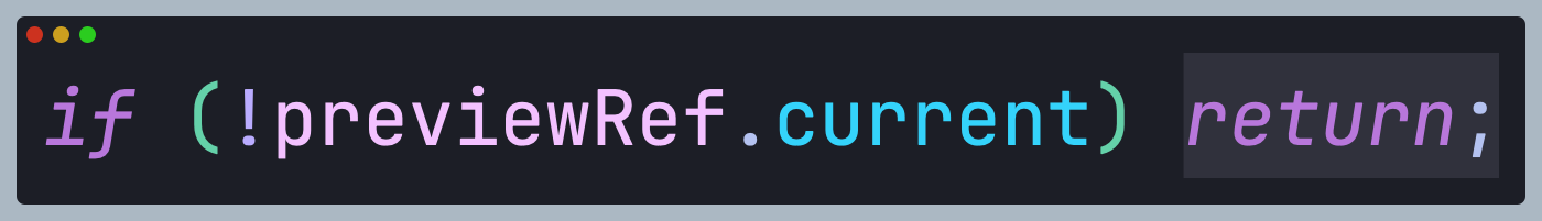 - 코드의 가독성을 높이고 위의 경우처럼 previewRef.current가 아직 없을 때 동작을 방지하는 등 발생할 수 있는 문제를 예방할 수 있도록 early return을 적극 활용했습니다.