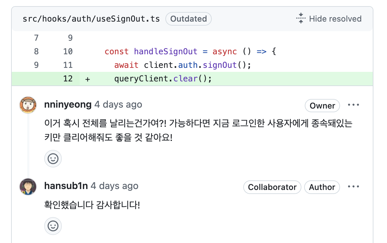 2) 더 나은 방향성이 있다면 적극적으로 공유하여 코드 퀄리티를 높이기