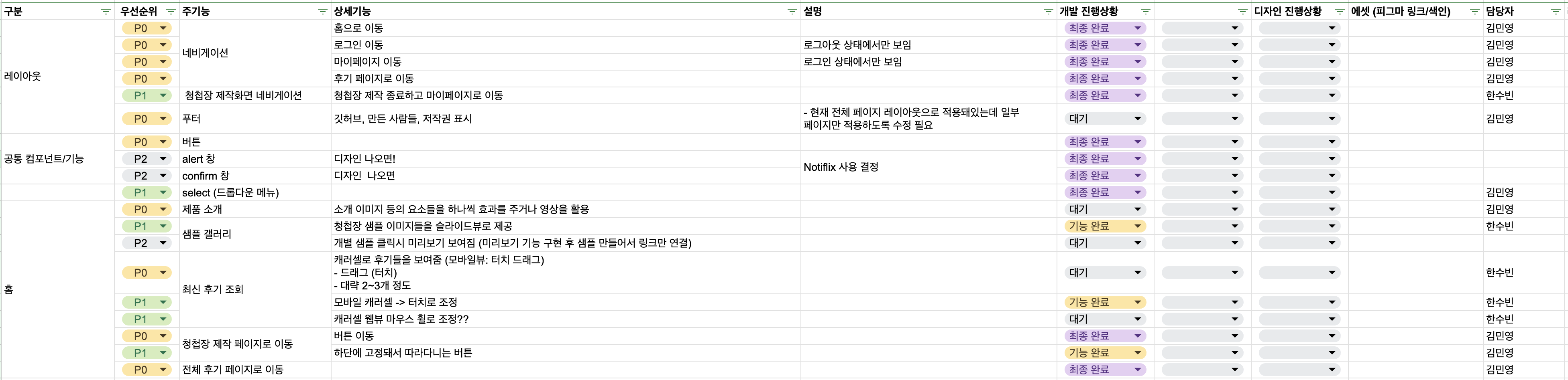 특히 기능명세서는 작성에 시간이 꽤 소요됐지만, 모두가 기획을 하는 상황에서 생각한 요구사항이 달라 불필요한 구현을 하는 상황을 방지하고 필요한 부분에 집중하는 것에 큰 도움이 되었습니다.