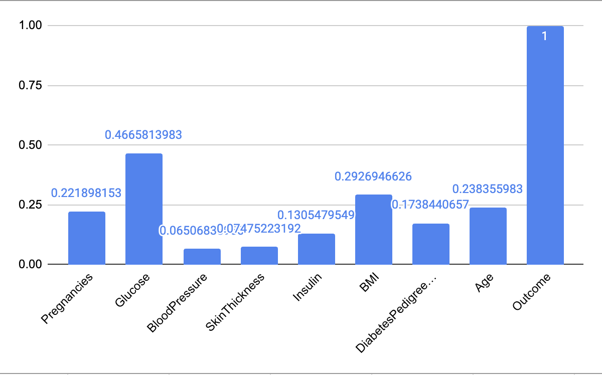 => 당뇨병 발병에 가장 큰 영향을 미치는 요소는 글루코스(혈당) 수치라고 가설을 세움