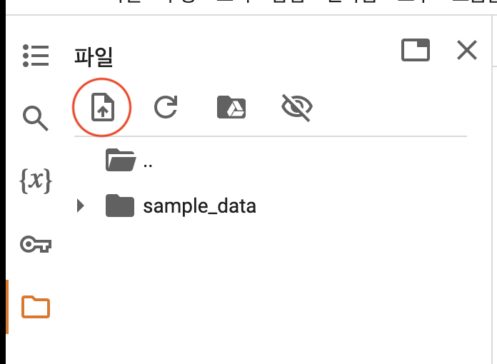 colab 좌측 메뉴바 파일 아이콘 > 세션 저장소에 업로드 눌러 분석할 파일 업로드