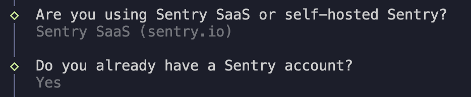 터미널에서 센트리 계정을 확인하고, Organization을 선택하면 어떤 프로젝트에대한 세팅이 필요한지 선택해야한다.
