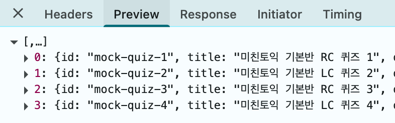 퀴즈 목록을 가져오는 컴포넌트를 구현하는 과정에서 다음과 같은 문제가 발생했습니다.