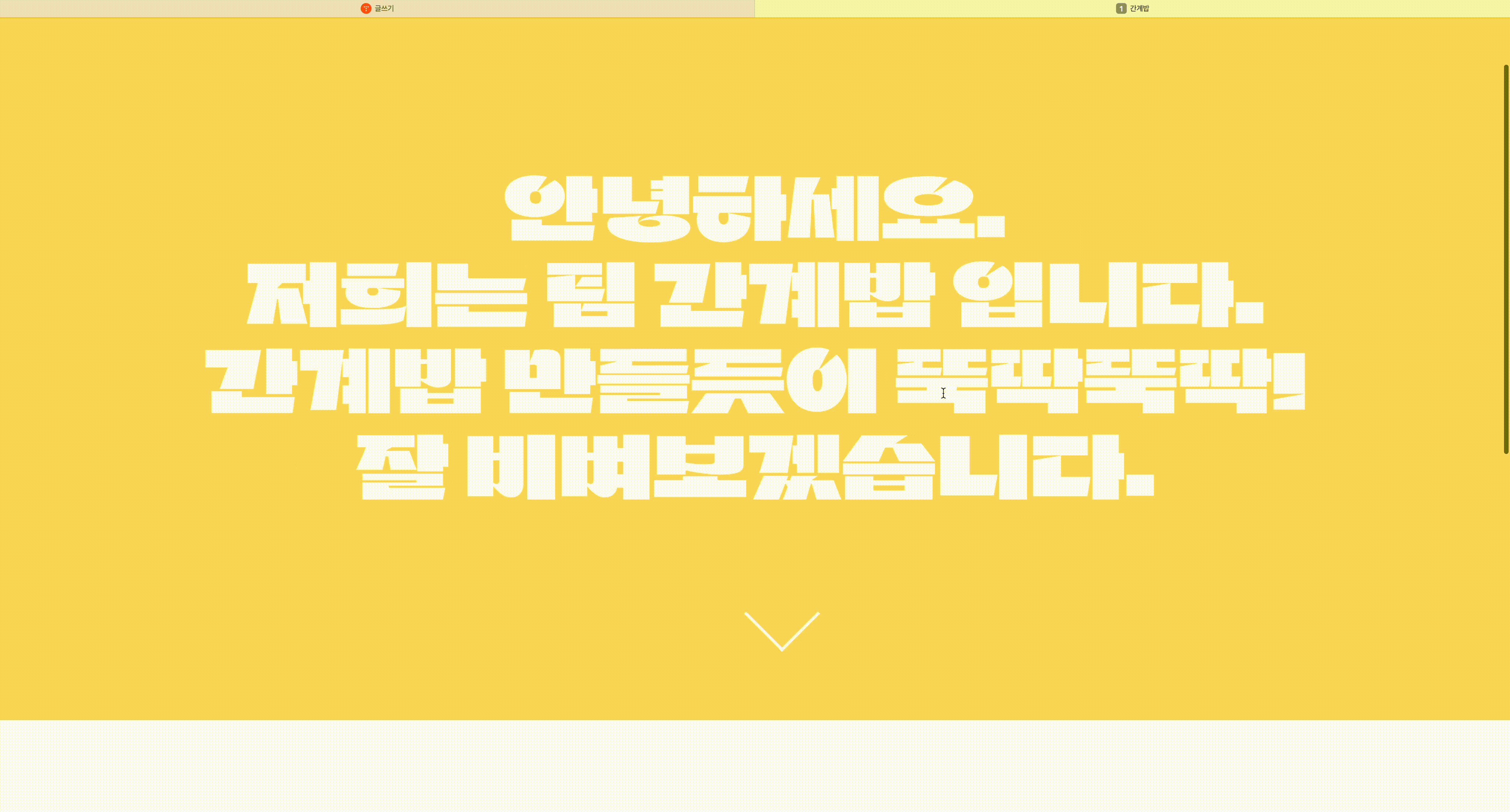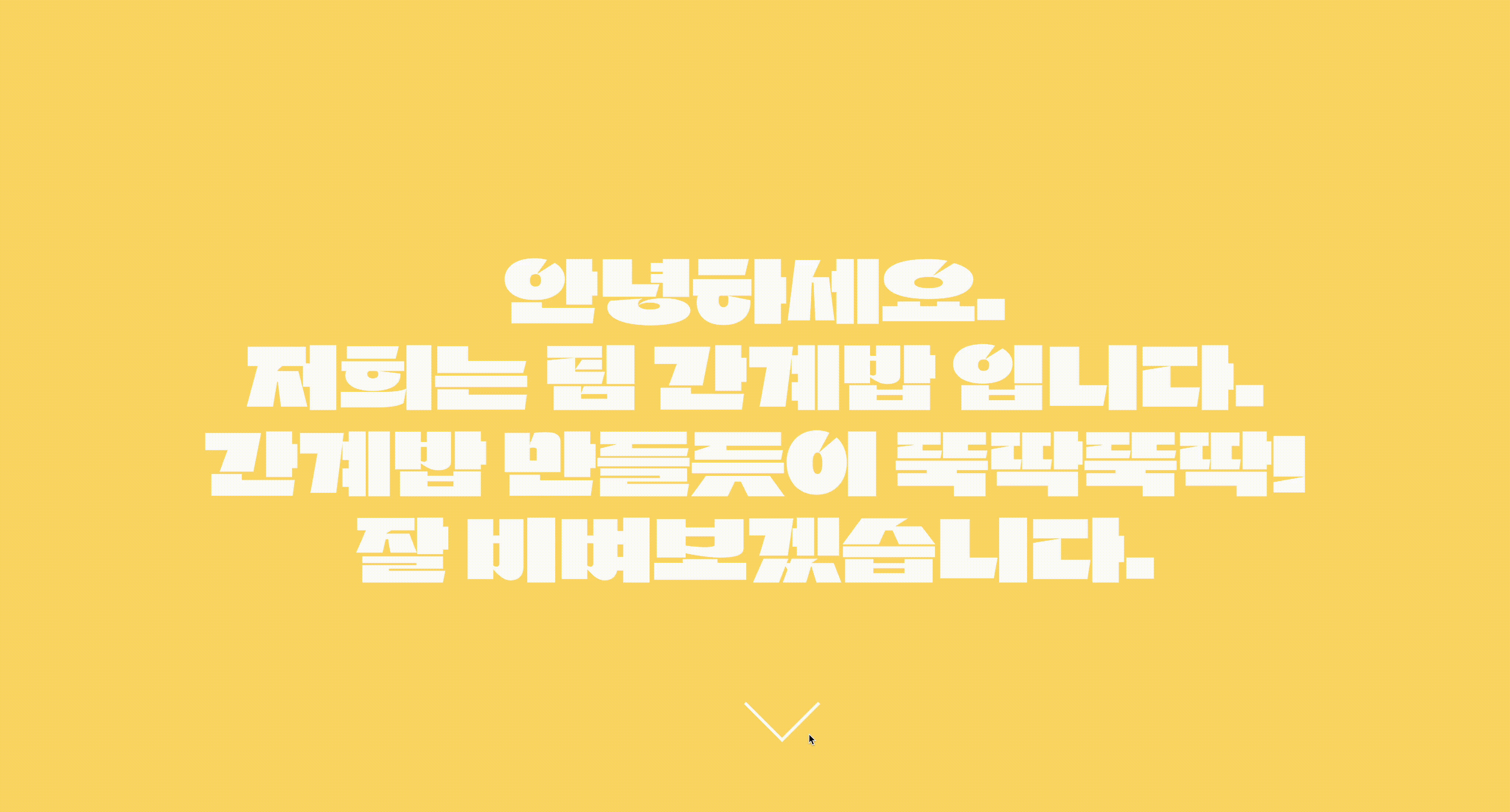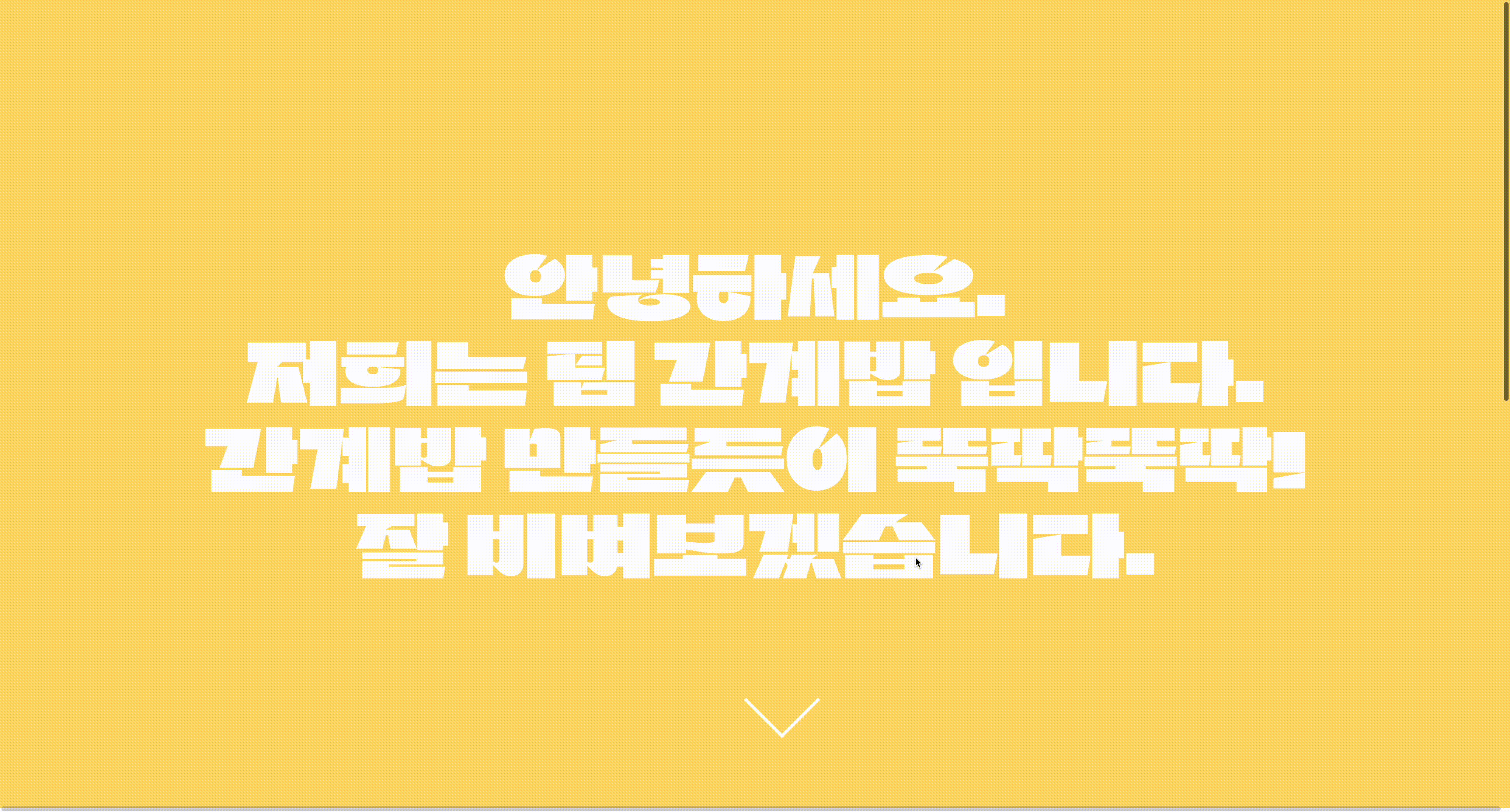 저런 형식으로 접속시 첫 화면에 꽉차게 한 눈에 들어오는 소개를 보여준 뒤 자세한 소개가 보이는 곳으로 자동 스크롤 하고싶다는 생각이 떠올랐다.