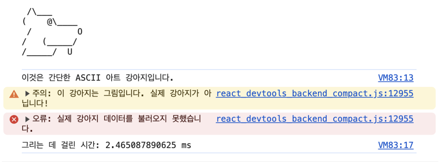 console.warn("주의: 이 강아지는 그림입니다. 실제 강아지가 아닙니다.");