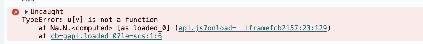 u[v] is not a function 이라는 오류가 발생했다. 개발자도구에서 오류가 발생한 부분을 보아도, 우리가 작성한 스크립트가 아니고 저 내용 이상의 오류메세지를 주지 않아 원인을 찾는 데에 많은 시간이 소요됐다..
