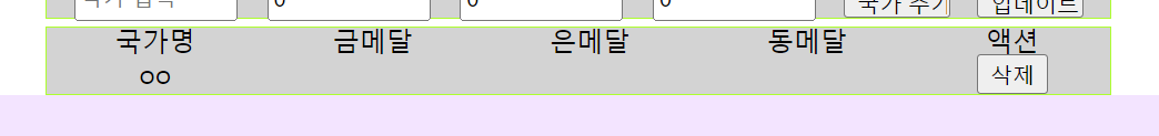 medalData state에서 삭제 버튼이 클릭된 row의 country이름과 같은 것을 필터링하고 업데이트 해준다.